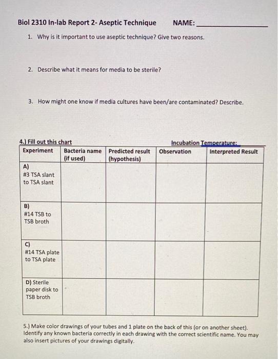Solved 6 23 Lab 3 Aseptic Technique Post Lab Report 5pts Chegg Com